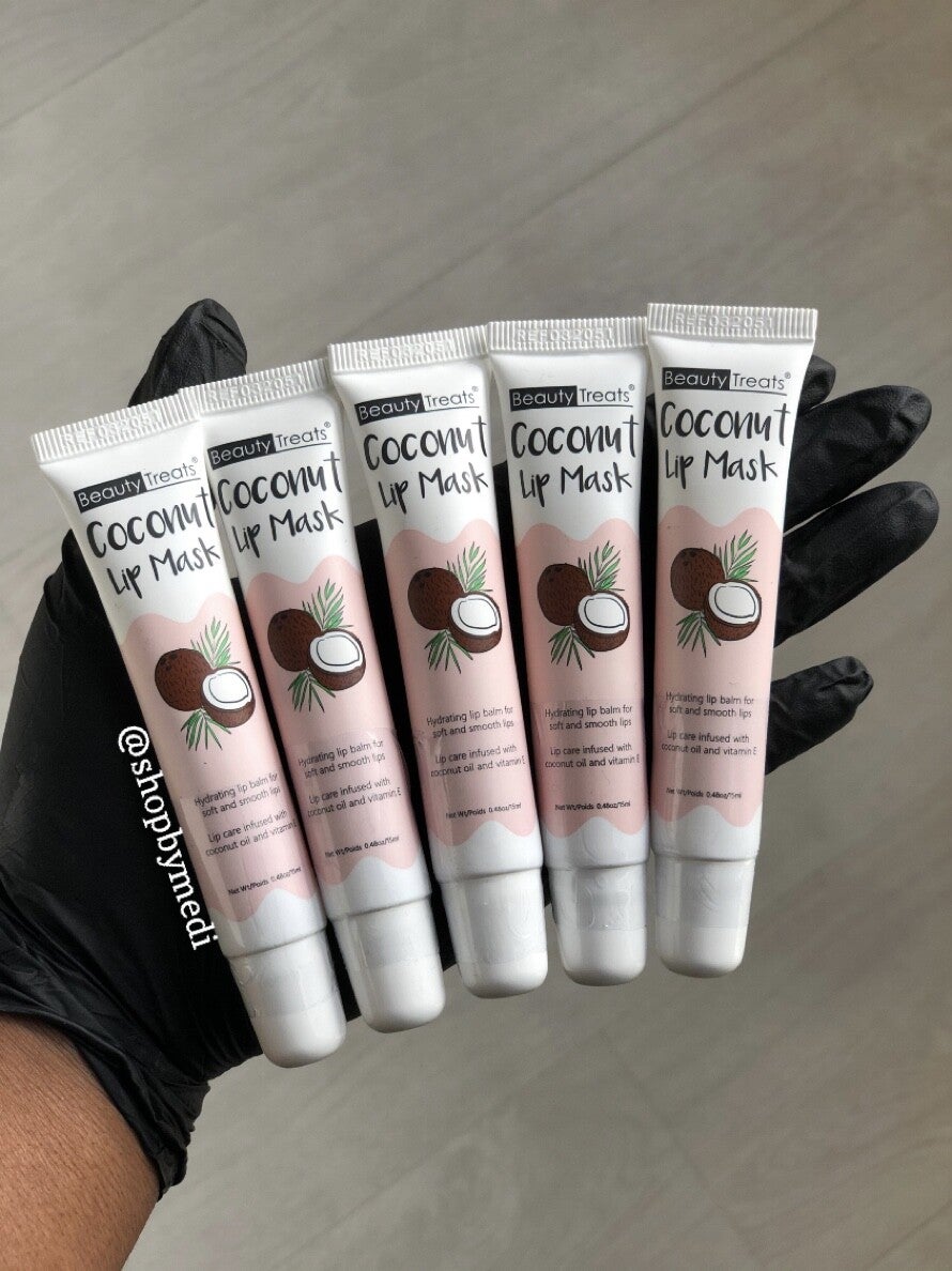 De Beauty Treatz Coconut mask lippen balsem, bevat cocosnoot olie en vitamine E. De lipmasker bevat intense hydratie om je lippen de hele dag en nacht te voeden!🥥💋